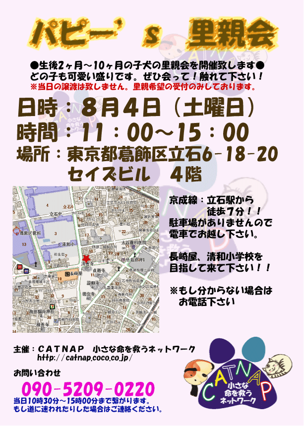 チッチ&ポッポに負けず劣らずの可愛いワンニャンに、直接会える☆里親会☆が開催されます。(詳細はCATNAP掲示板で)