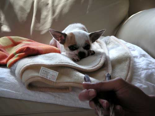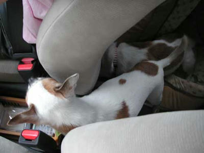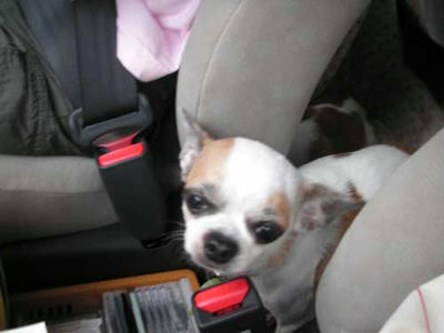 ”私の運転の運転がへたっぴだから”説を却下して、小さいチワワは揺れのダメージを受けやすいからの自説を支持。