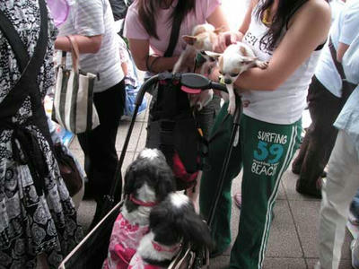 お外では、他の犬にかなり「ワンワン!バウバウ!!」のチッチ。チッチにつられて南無南無するポッポ。さて、お客様にはどうかな。