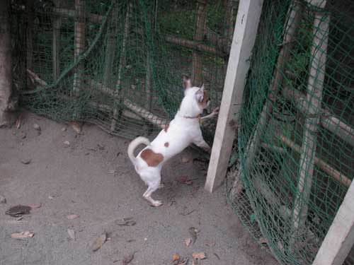 チッチは、柵の向こうにワンちゃんが通ると、はってある網に張り付き・・・ポッポは、せっかくフリーなのに人のそばを余りはなれず・・・みたいな感じでしたが、ナナちゃんのママさんパパさんに遊んでもらって、それなりに楽しんでいました♪