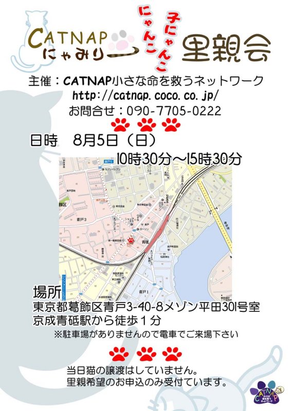 8月5日(日)10時半~15時半 猫里親会