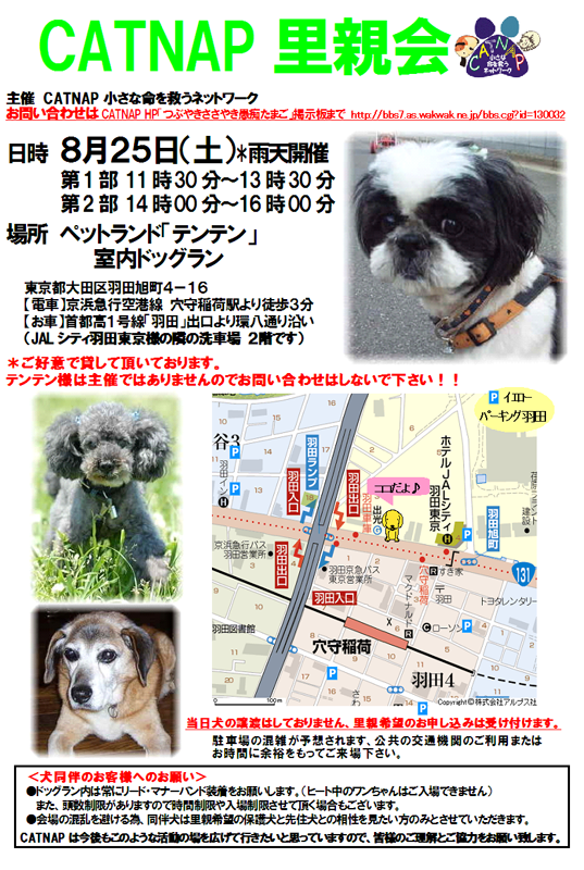 8月25日(土)11時半~16時 犬里親会