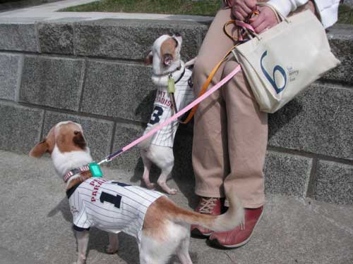 お散歩が大好きなチッチ&ポッポですが、ポッポの方は、さながら「ローマの休日」のオードリーのように、目下、下界を探索中。見るもの嗅ぐもの、全て興味深々のようです。彼らの肉球は、引き取った時は、きれいだったのですが、今はコンクリートでこすれ始めております。