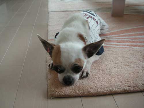 昨日の夜のお散歩の途中から、チッチの様子が微妙に変。。。