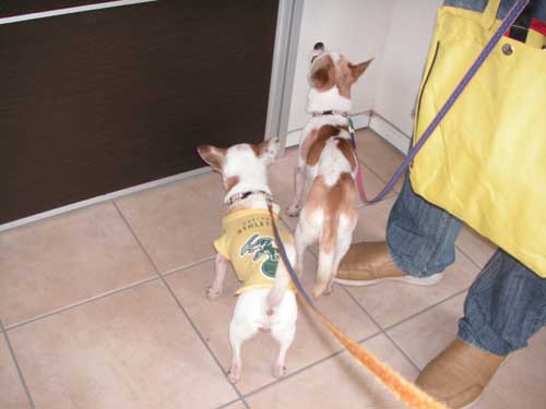 実は、病院で肛門腺を絞ってもらってから、薬を飲まないうちに、にわかに上がってきていました。絞って出てきたのが、かなり固形に近かったので、圧迫されて痛かったのかもしれません。今朝のお散歩では、ぶんぶん尻尾ふっていました。 チッチもポッポも、お散歩に出掛ける時は玄関からダッシュで飛び出ていくのに、帰ってきた時も、我先にとダッシュで家の中に入っていきます。出たいのか帰りたいのか、どっち!?