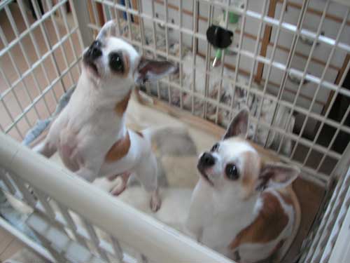 声をかけると、並んだケージに入った二頭トコトコ近寄ってきます。