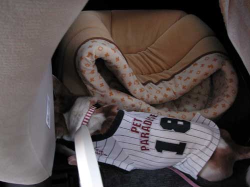 帰りの車は、車酔いも忘れて、チッチは爆睡。ポッポは、相変わらず下にもぐって、私の華麗なアクセル&ブレーキさばきを、マバタキもせず、観察してたらしいです(笑)